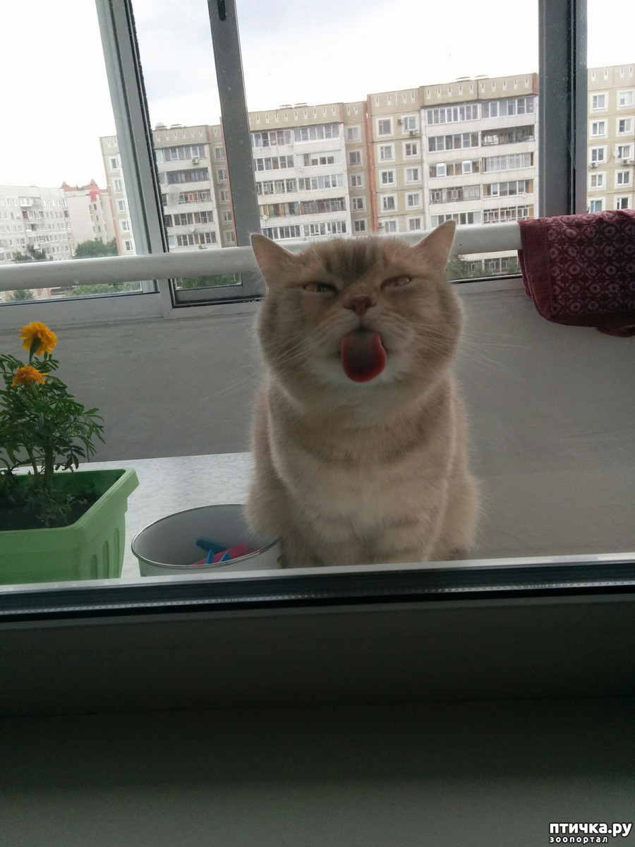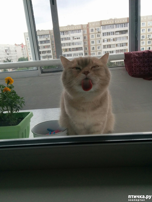 К моей великой радости Персик ко всем цветам совершенно равнодушен, зато стёкла на окнах облизывает с удовольствием и они всегда замусоленные внизу , как-будто я их не мою совсем