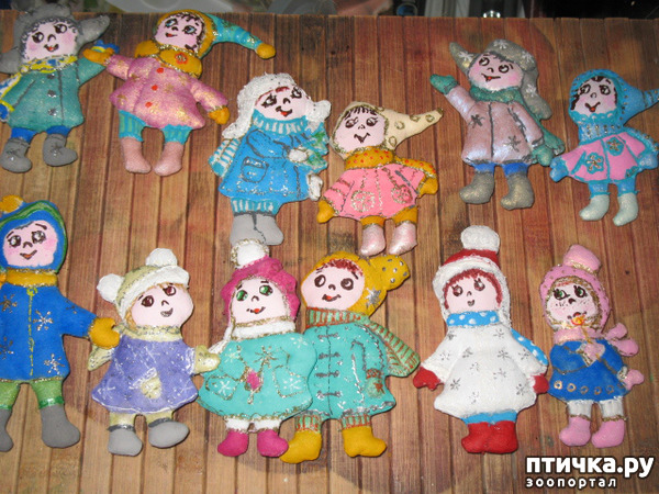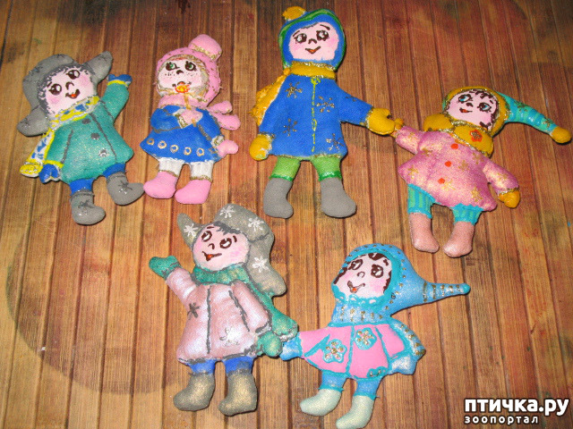 Все игрушки сшиты из простой белой бязи. Потом набиты синтепухом и раскрашены акриловыми красками и контурами. Внучка уже часть приватизировала. Сказала, что будет с ними играть!