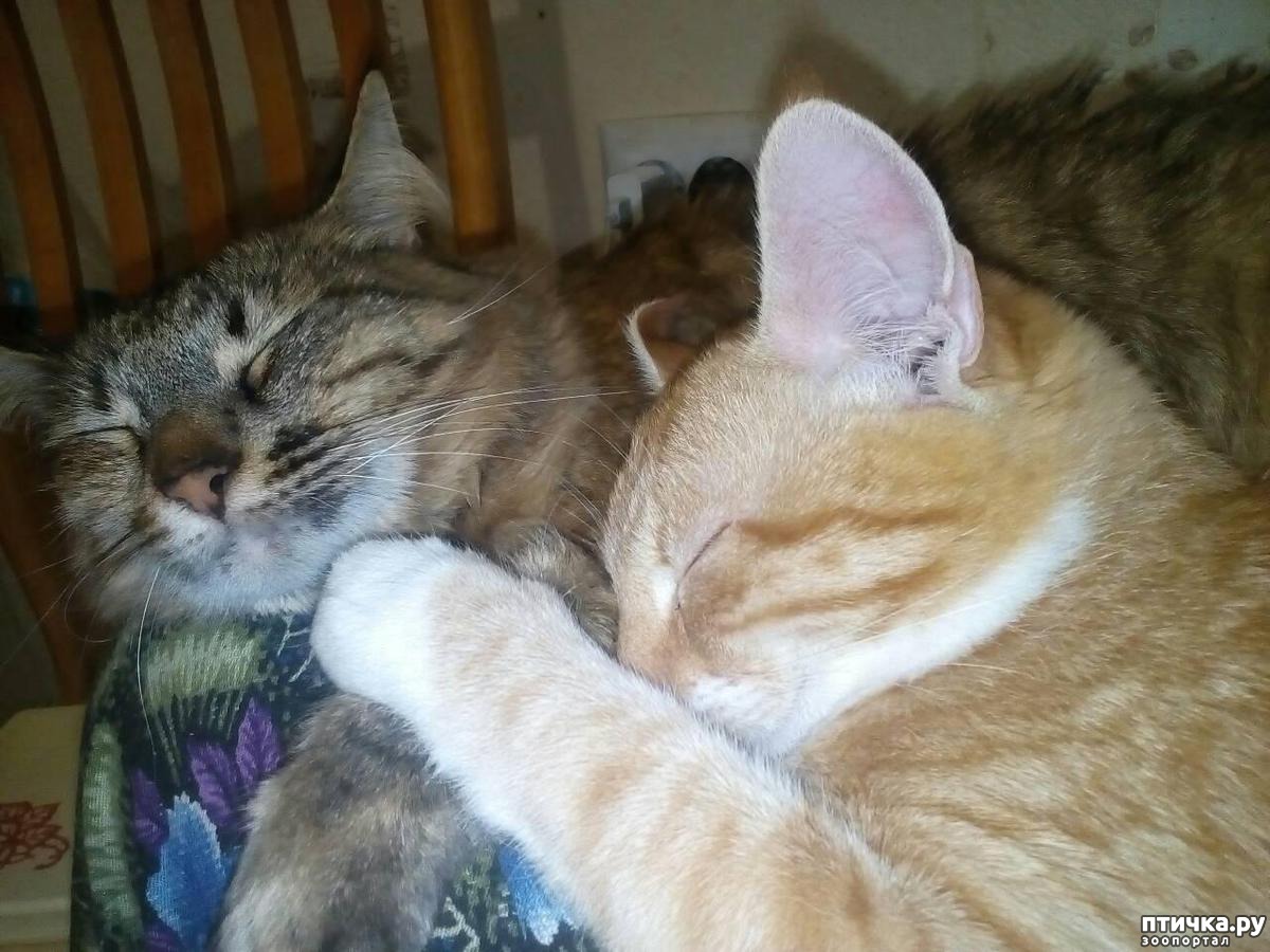 Раньше у меня жила кошка по имени Люся, прожила 16 лет и ушла в лучший мир. В доме стало пусто и Аська скучала без компашки. А тут папина кошка принесла котенка. рыжего, лобастенького и такого лапочку, что я решила забрать его себе. Назвала его Батоном. потому что он такого цвета, как хорошо пропеченный батон. Он оправдывает своеимя полностью. Кот родину готов продать за вермишель (не обязательно вареную, можно и сырую), обожает блины, свежий черный хлеб, вообщем все мучное и сырую гречку. Проще сказать, чего этот котище не ест. Он готов жевать и днем, и ночью. Из любой посуды, в любой позе. До появления Батошки в семье, я не знала, что коты едят мандарины и бананы. а оказалось еще как едят, Аська проявляет заботу о младшем собрате. Она для него еду выпрашивает. Выпросит - а потом зазывает его и ждет, чтоб налопался. Потом вымоет ему морду, а еще надергает проросшего овса из вазона, чтоб мальчик не перенапрягся и покушал травки. Он, лентяюга, ест только тот овес, который заботливая Ася наскладывала ему вокруг миски. Если Ася вовремя не нащипала овса, Батошка очень жалобно мяучит и она несется исправлять свои недочеты. Вот такие у меня кошарики.