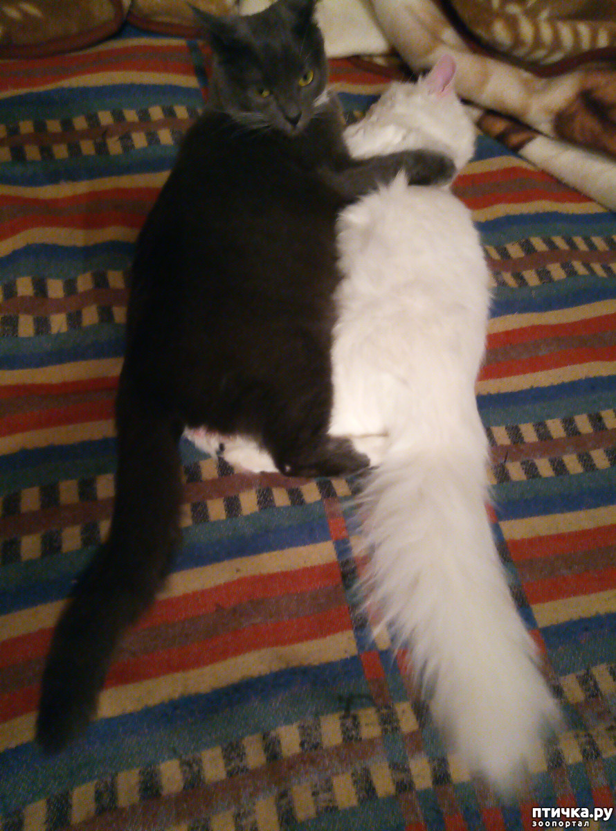 Потом смотрю, Мурчик в комнате хвост распушил, спину выгнул и на Беляша смотрит.