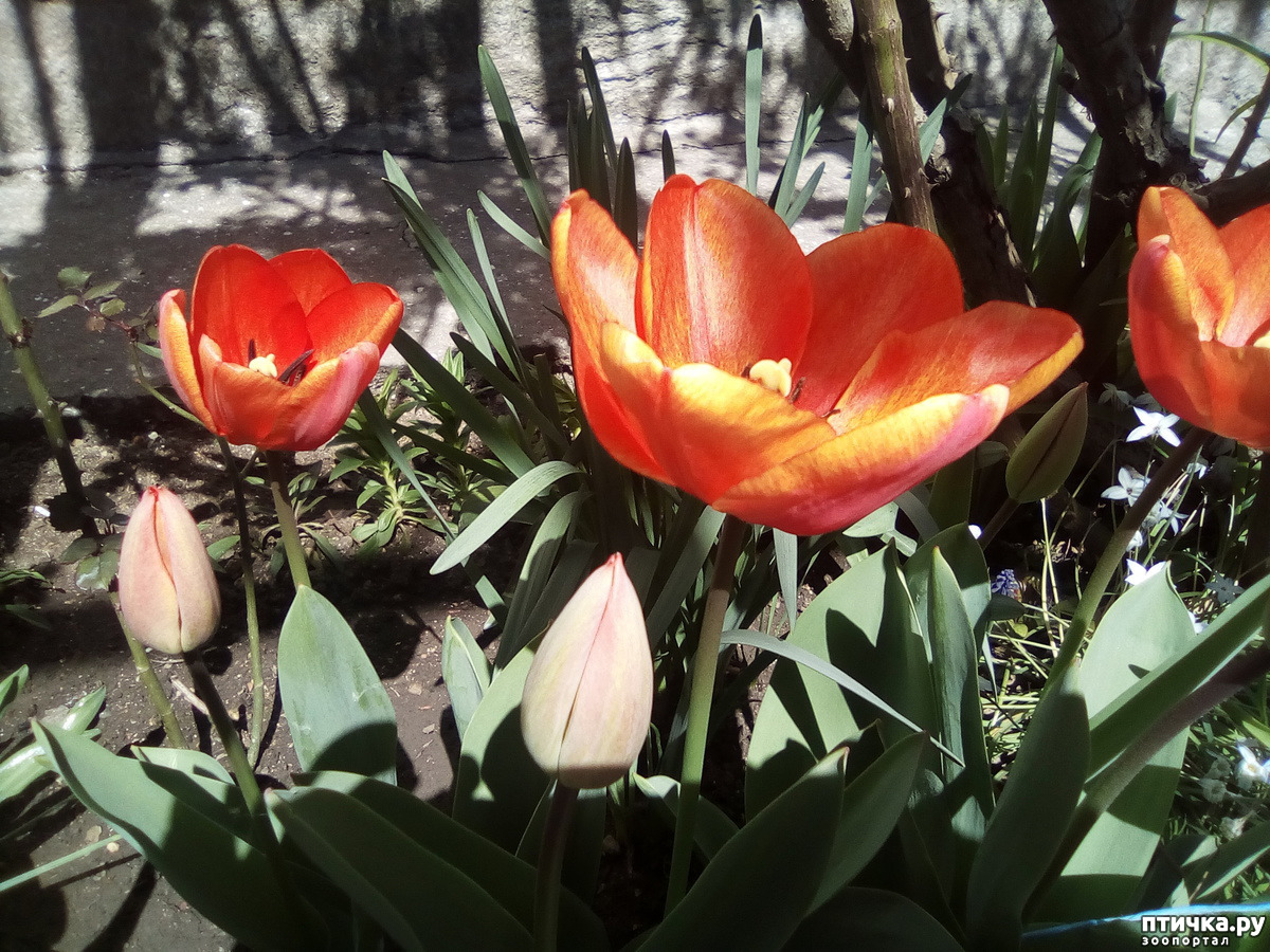 Зацвёл мой любимый тюльпанчик. Позволит ли ему ветер подольше радовать нас своим необычным цветением? Это первое его цветение. В позапрошлом году я купила клубни тюльпанов для посадки в палисаднике у одной старенькой, старенькой бабулечки. Она с таким азартом рассказывала мне о каждом сорте тюльпанов, что я просто заслушалась. Я, помнится, в тот день купила у этой словоохотливой старушечки 10 клубней тюльпанов. А именно этот она мне просто подарила на счастье, как она сказала. И, верите, смотреть на этот тюльпанчик, который впервые порадовал меня, действительно, некое счастье.