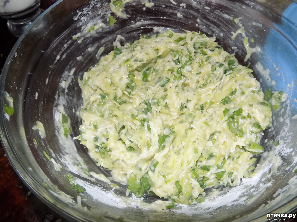 Хорошо отжимаем жидкость от кабачков, можно использовать дуршлаг для стекания жидкости, а потом ещё и отжать руками. Это очень важно, чтобы лишней влаги в замесе не было.
