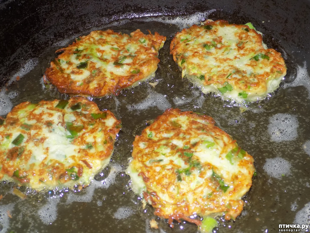 Жарить будем на умеренном огне, чтобы оладушки хорошо пропекались. На своё усмотрение выдерживайте золотистый цвет корочки, но не переусердствуйте, ибо сыр уже сам по себе делает поверхность оладий соблазнительно золотистой, чем и привлекателен этот рецепт.