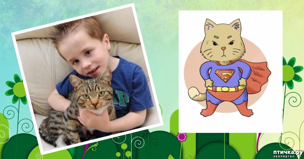 Пятилетний малыш Этан Фентон играл возле своего дома вместе с младшим братом. К ним подошли трое старших ребят и начали задирать и обижать братьев. Малыши не обращали внимания на задир, и тогда один из них толкнул Этана так, что тот полетел на землю. В эту же секунду из-под машины рядом выбежал кот Этана – Смадж. Реакция животного была мгновенной – он набросился на обидчика. Испугавшись разъяренного кота, обидчики еле успели убежать. Когти и зубы – это вам не шутки! Такое поведение было тем удивительней, что кот ранее проявлял себя как доброе и спокойное животное. Но вот обижать дорогого хозяина не позволил! Владелица кота говорит, что не ожидала от животного такого поведения и теперь чувствует себя более защищенной и знает, что при случае питомец защитит ее и детей.