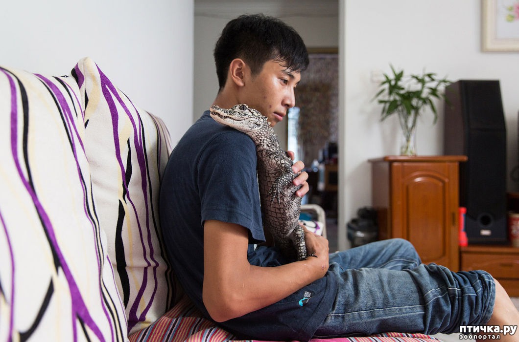 4)26-летний Шао Цзянь Фэн с аллигатором Янцзы в своем доме на окраине Пекина.