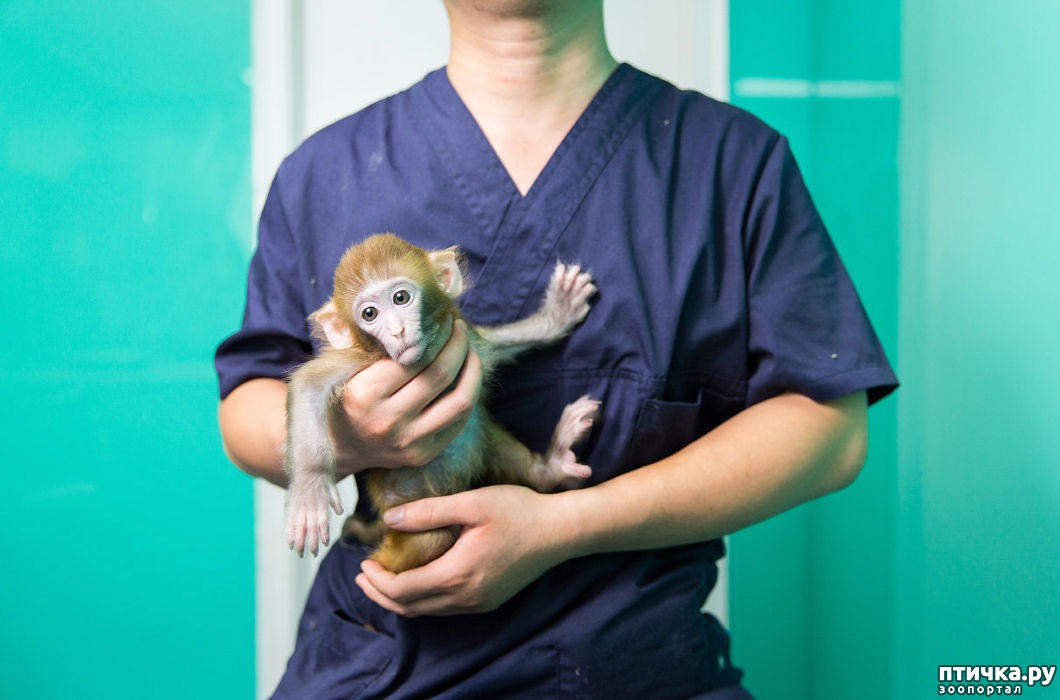 13) Макак-резус на руках ветеринара в пекинском магазине.