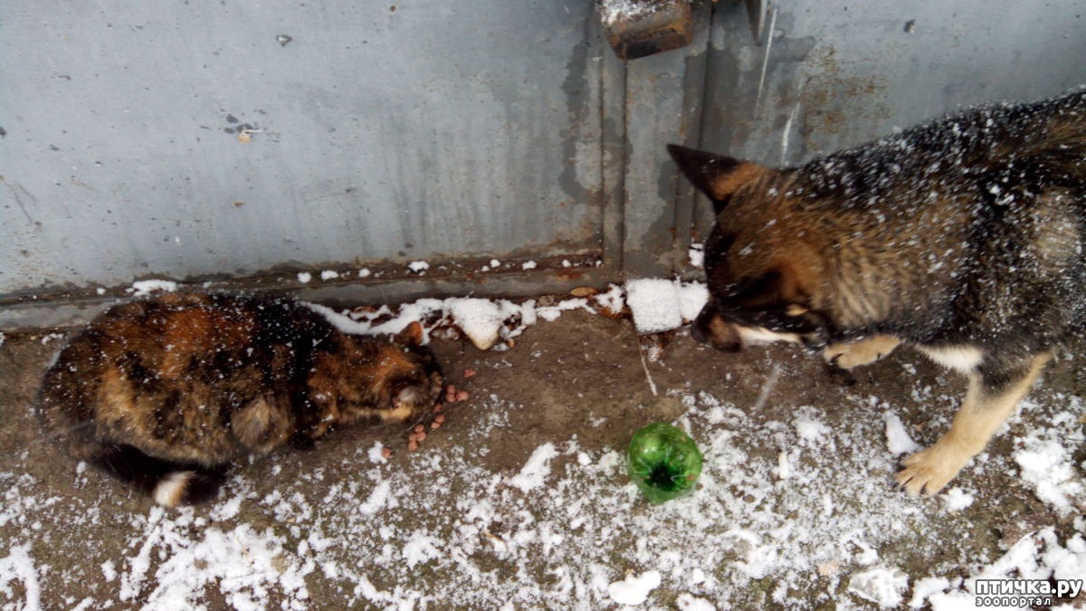 Пришлось его покормить чуть в сторонке. Дала немного корма, припасенного для Стеши на обед.