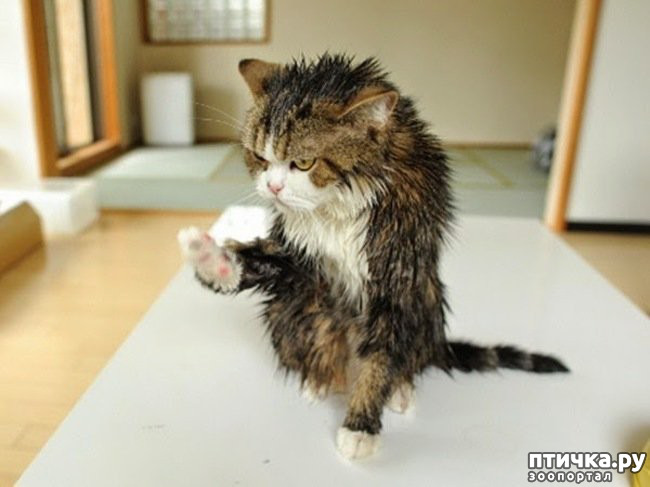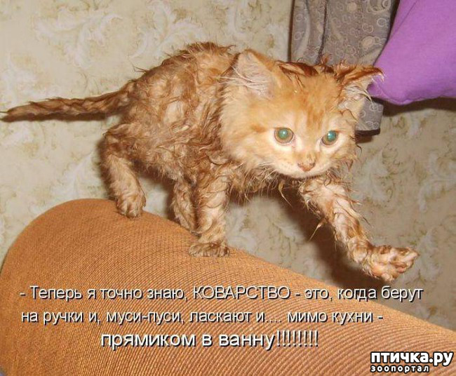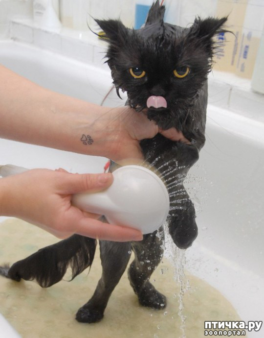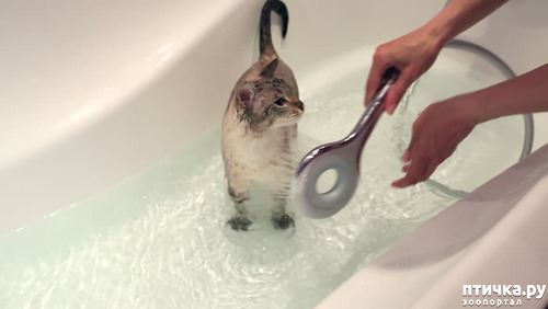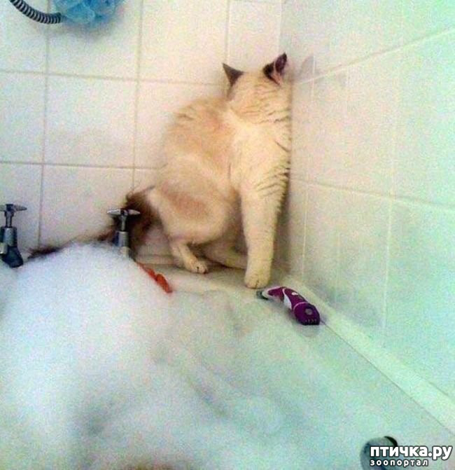 Любит сидеть и лежать в пустой ванне, но если там есть хоть капля воды, ни за что не пойдет!!!