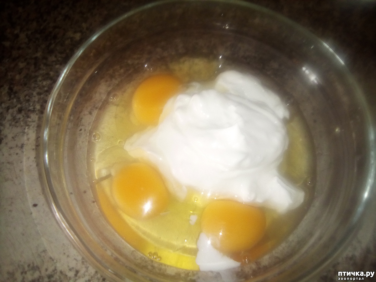 В ёмкость разбить яйца, добавить сметану.