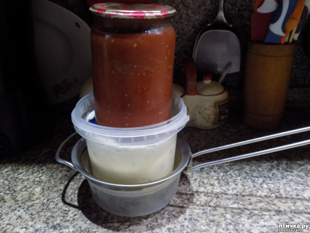 Далее, я ставлю на будущий сыр гнёт. Это может быть что угодно, например, банка, наполненная водой. Я установила на свою нехитрую конструкцию банку с домашней борщевой приправой. Отправляю эту конструкцию в холодильник не менее, чем на 3-4 часа.