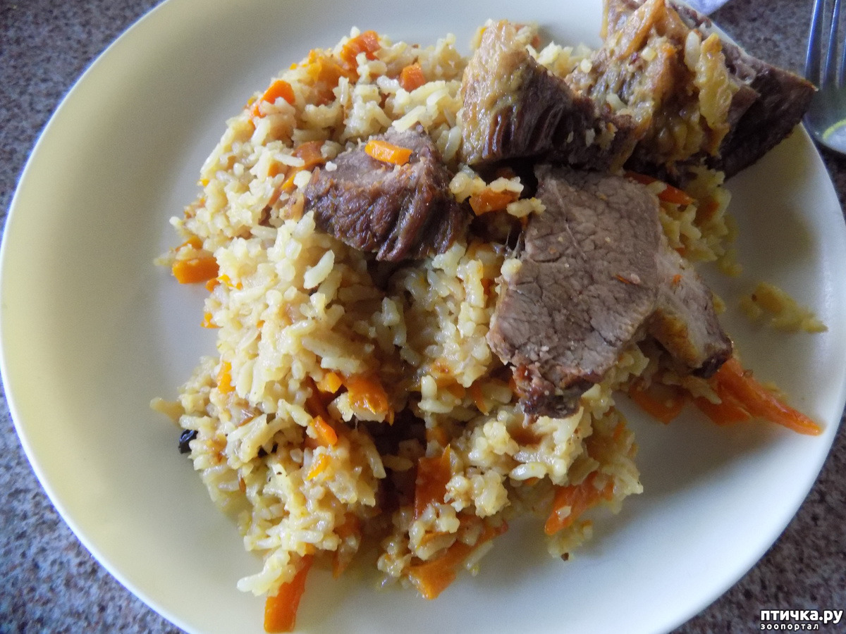 Даже наш Котофей оценил творение повара. Он выпросил кусок мяса из плова и удачно расправился с ним.