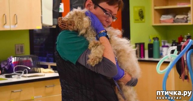 Их назвали Бигги и Смолл. Смолл — восьмилетний белый пудель. Прежде чем попасть на осмотр к ветеринару, ему пришлось сбрить всю шерсть, ведь сквозь нее ничего нельзя было разглядеть. Оказалось, что у него больший проблемы с зубами.