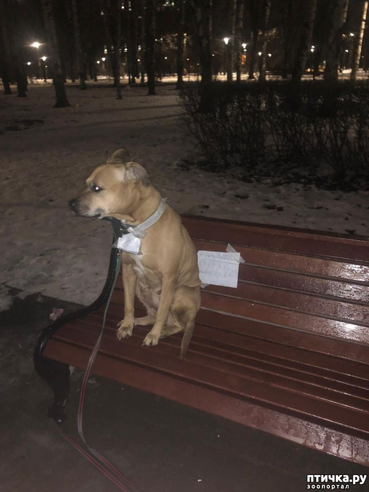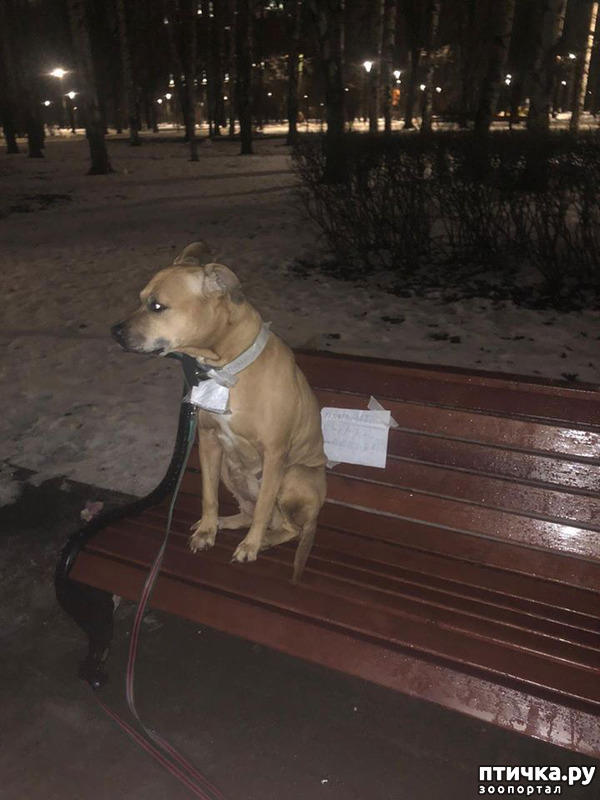 Парк Дубки. Женщина привязала собаку, и приклеила записку " Помогите. Собака добрая".