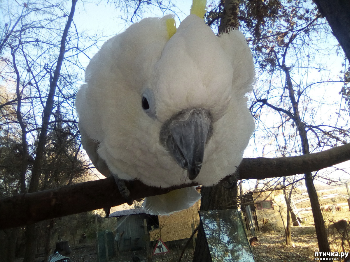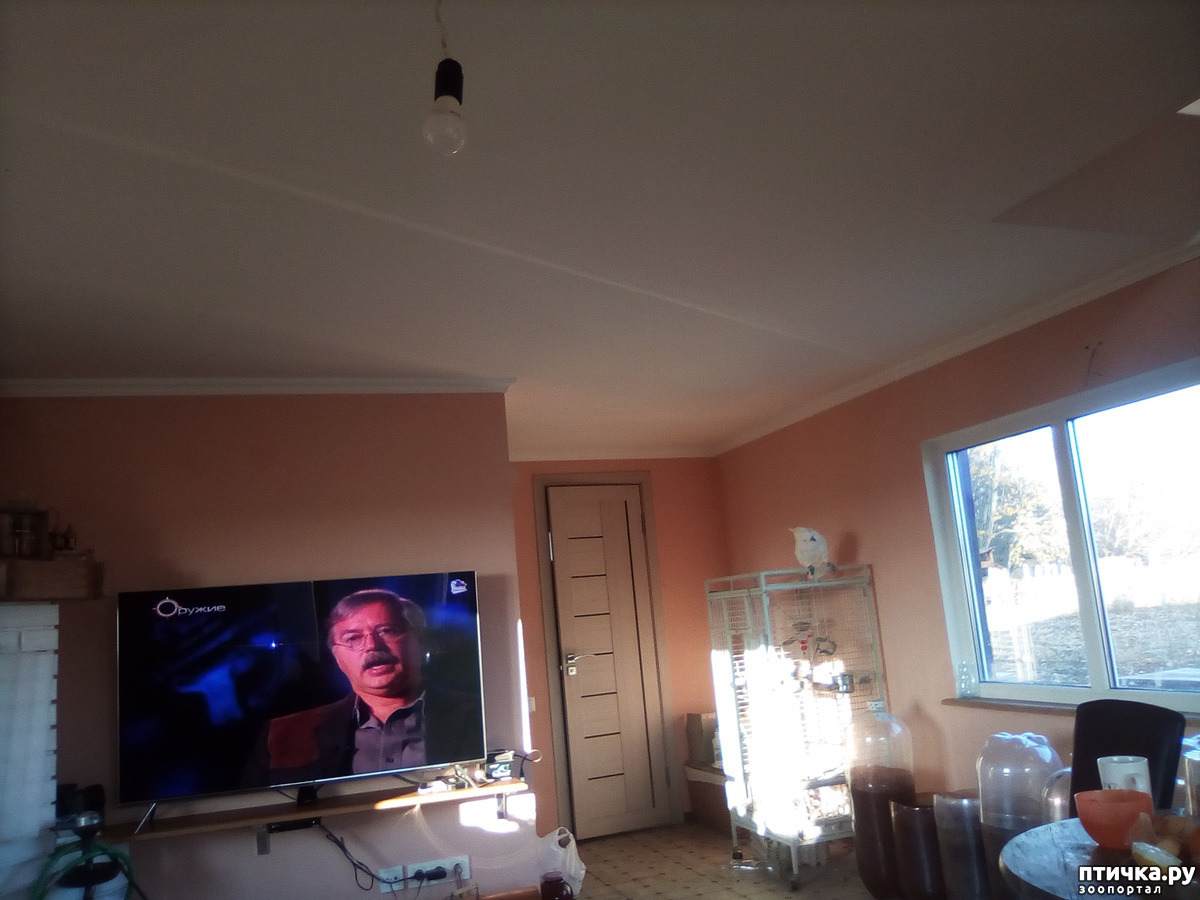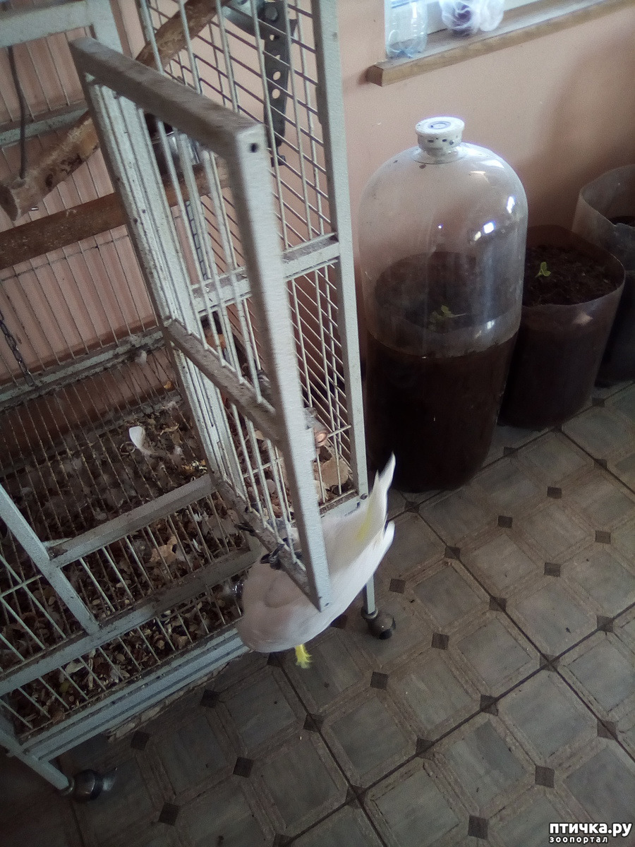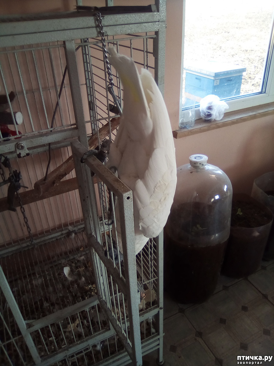 Ну, о ком я вам ещё не рассказала, так это о нашем какадушнике. На волю его теперь отпускают совсем на короткое время. Он быстро замерзает. Подышал немного свежим воздухом и в клетку!