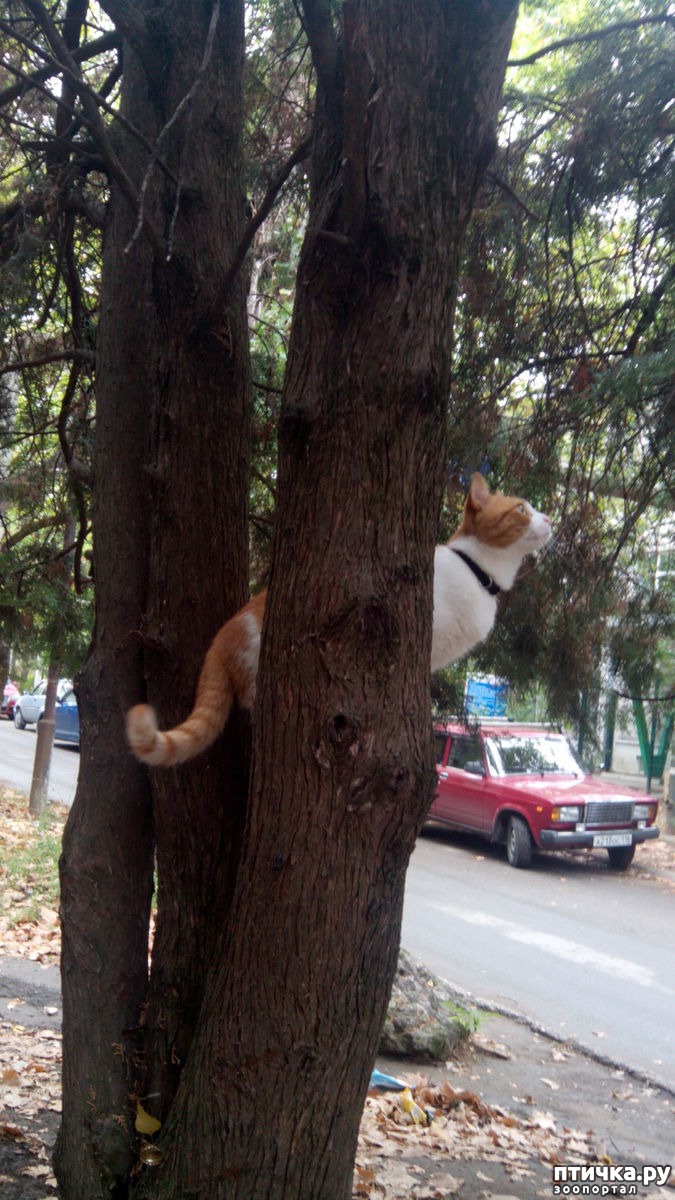 Иду домой и вижу, что он сидит и высматривает кого-то на дереве.