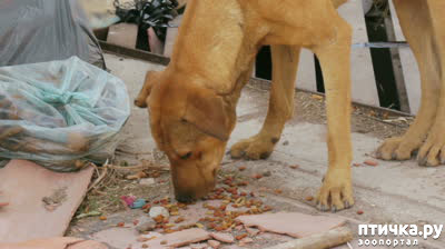 Собака подбирает съедобные объедки на улице и попрошайничает дома. Голод