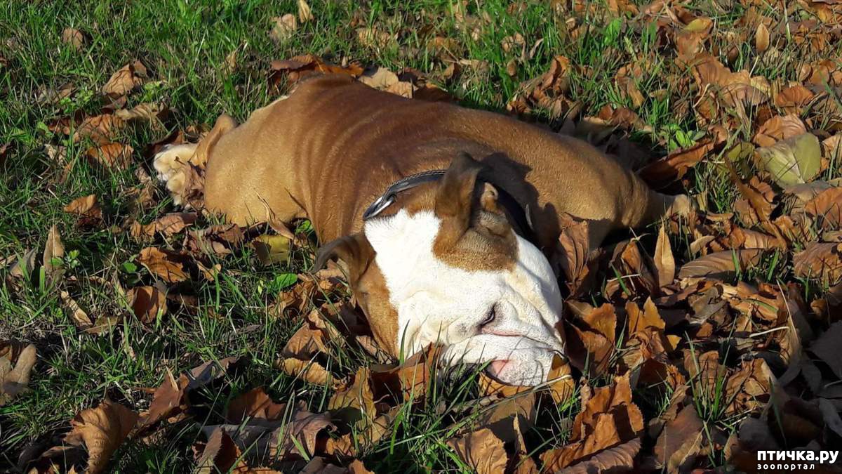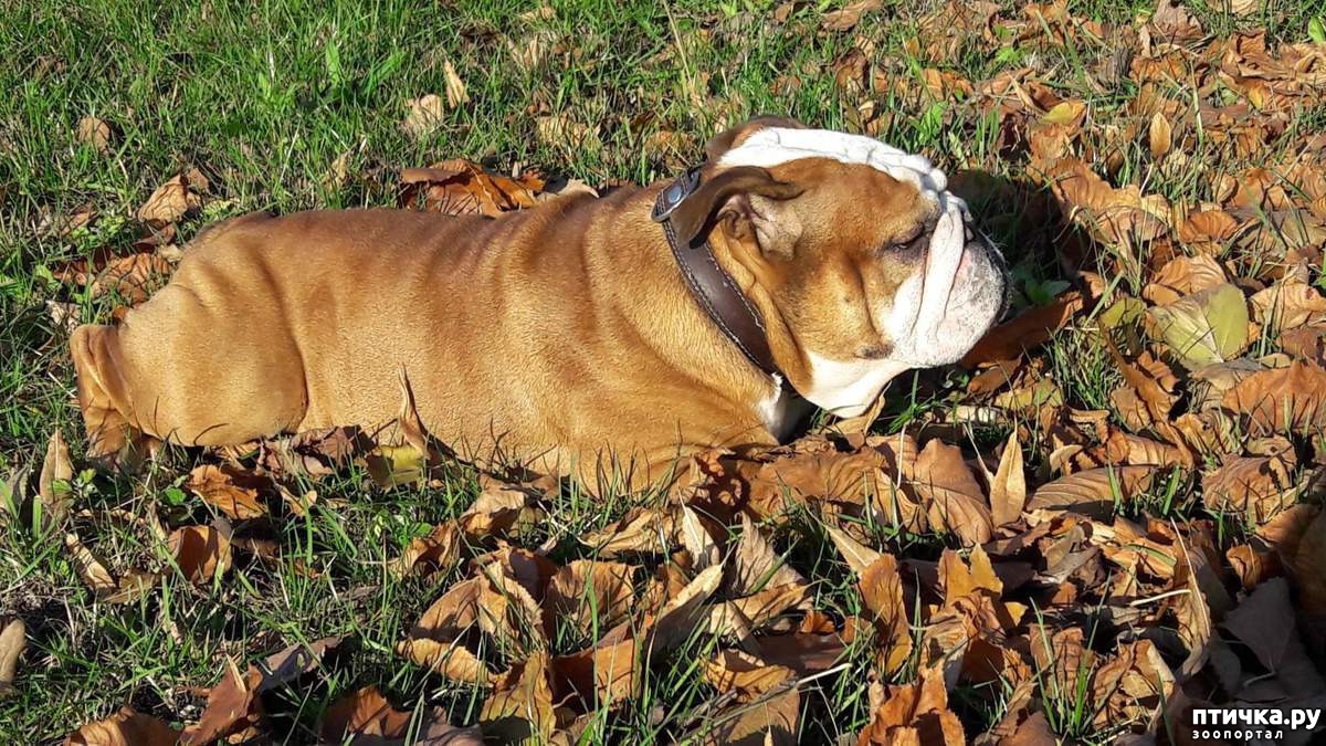 Замечательная погода для английского бульдога: было достаточно тепло (градусов 5-7), солнечно и тихо. И благодаря всему этому мы замечательно погуляли, набегались и навалялись в листьях. Попытались мимикрировать под кучу листьев. По-моему, Рокки это удалось. А как вы считаете?