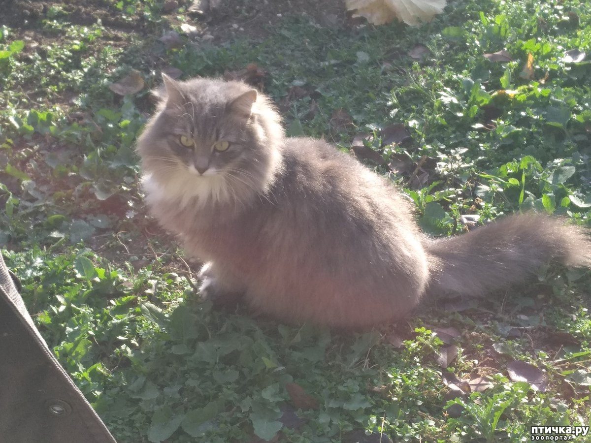 Наконец, о кошках. Вот, моя Пушуня на зелёной травушке-муравушке на утреннем моционе.