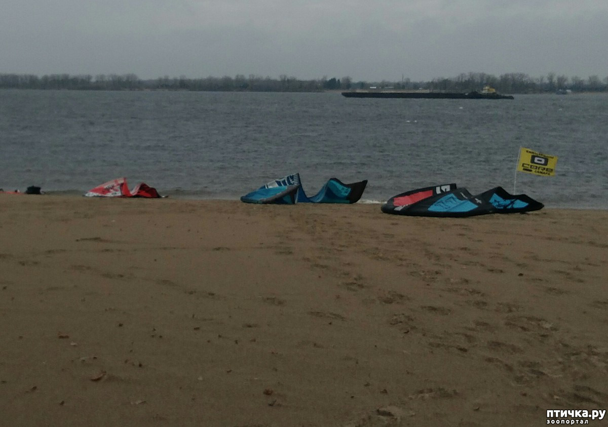 Если учесть, что весь остальной пляж был пуст, согласитесь, это было любопытно и мы отправились посмотреть.Это были кайтсерфингисты. Которые на доске по воде и с парашютом. Хотя может они и не так называются. Это летний вариант, а зимой этот вид спорта называют сноукайтинг. Поспорили мы с мужем (хотя ни тот ни другой в этом не разбирается и названия то в интернете прочли) и пошли поближе. Это был клуб, потому что был флаг, скажем так, официальное общество.
