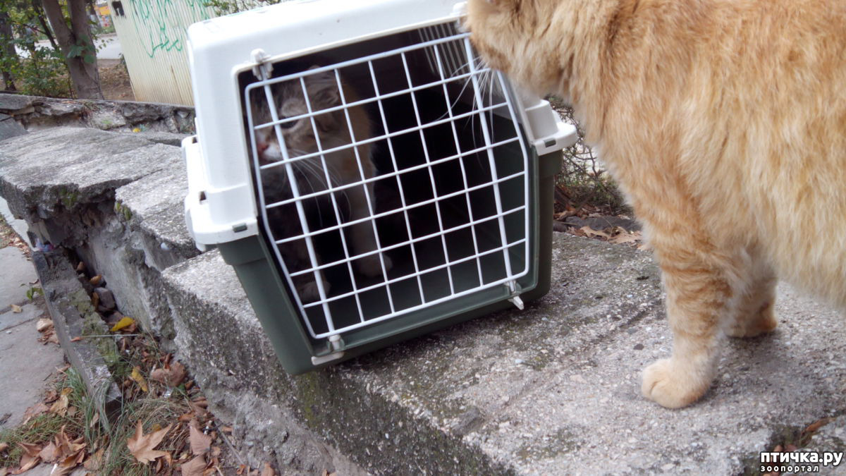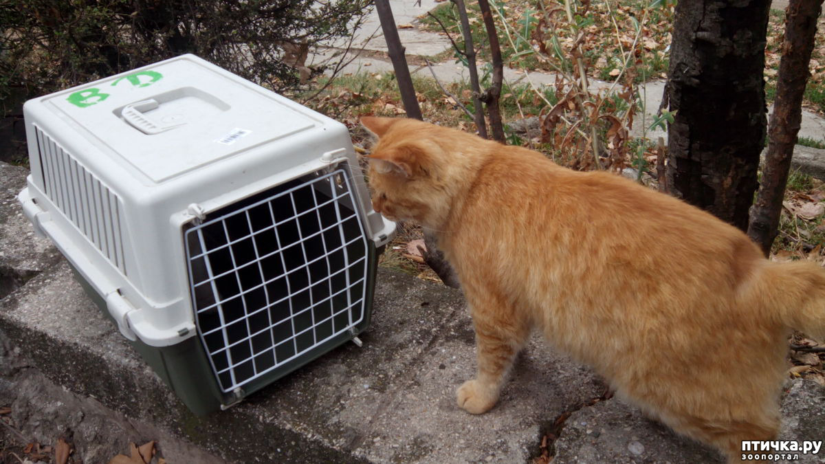 Рыжий друг не понял, зачем ее в переноску посадили.