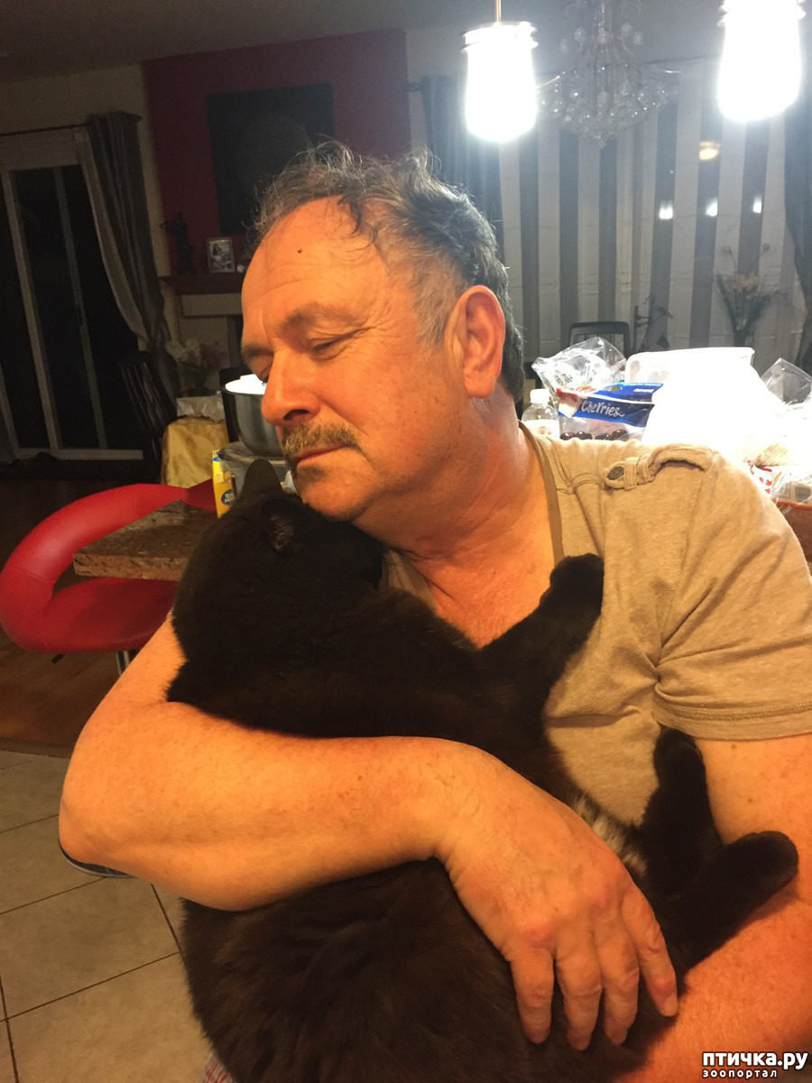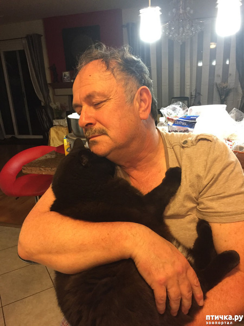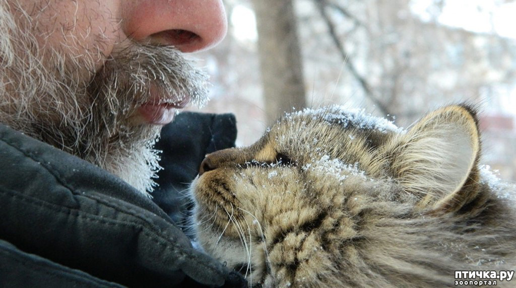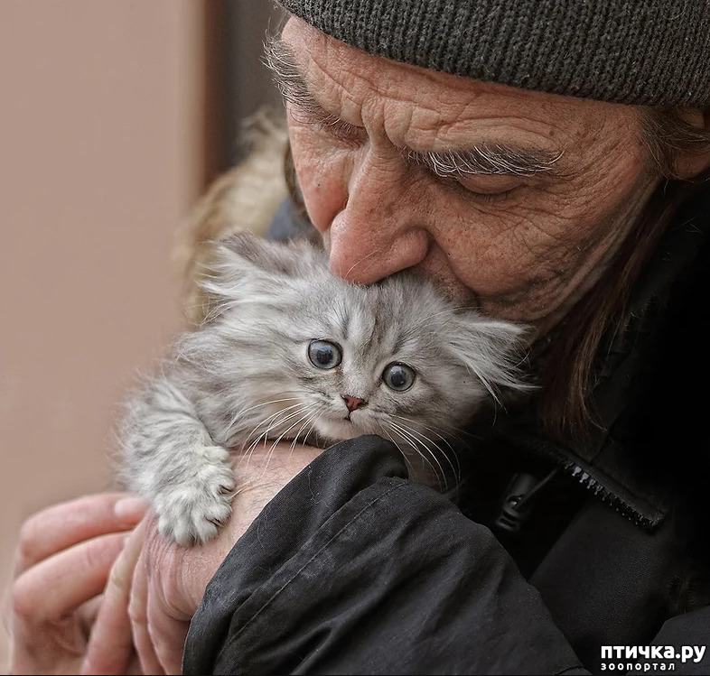 Для меня самые трогательные, самые пронзительные фото - первое и девятое: старенький, побитый жизнью и скорбный кот ( видимо приютский) обрел себе такого же немолодого папу, и пожилой мужчина растроганно и нежно прижался губами к кошачьему лобику ...