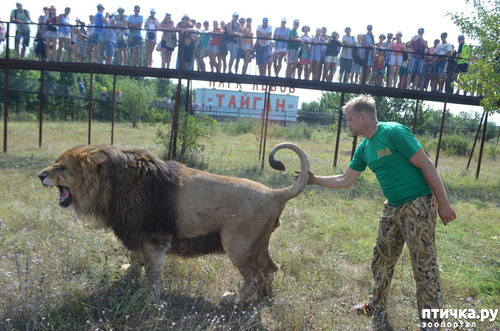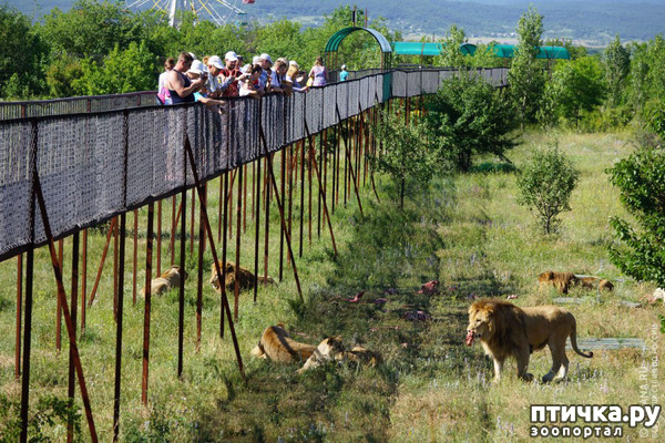 А так там всё совершенно безопасно: вольеры, мостики. Совершенно не надо лезть к львам, впрочем прогулки со львами сейчас запрещены. Я бы под страхом смерти не прыгнула бы с парашютом, или не поехала бы на лыжах с большого трамплина, каждому своё. Смотреть с мостиков очень интересно и совершенно безопасно, особенно интересно, когда на кормёжке присутствует Зубков (он присутствует. если не в судах), он и рассказывает, и балуется и общается с публикой...