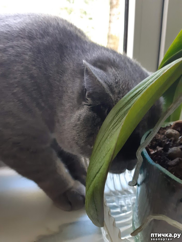 Стоят у нас на подоконниках горшки с растениями. Кот, если не спит, обязательно участвует в процессе полива. Может потрогать лапой влажную землю или воду, вытекающую из горшка в поддон. Пытался пить, но не понравилось – воды мало, поддон мелкий, язык цепляется. Ситуация изменилась, когда у нас появились орхидеи. Их рекомендовано поливать так: в глубокую емкость наливать хорошо отстоявшуюся воду и ставить туда горшок с растением на несколько часов. Для Шустрика наступил водяной праздник. Стоит на подоконнике очередной таз с водой, в который можно макать лапы (даже сразу две!), чтобы ловить солнечные блики, и ПИТЬ!!! Обратите внимание, не свежую или проточную, а 2-3-суточную водопроводную воду!