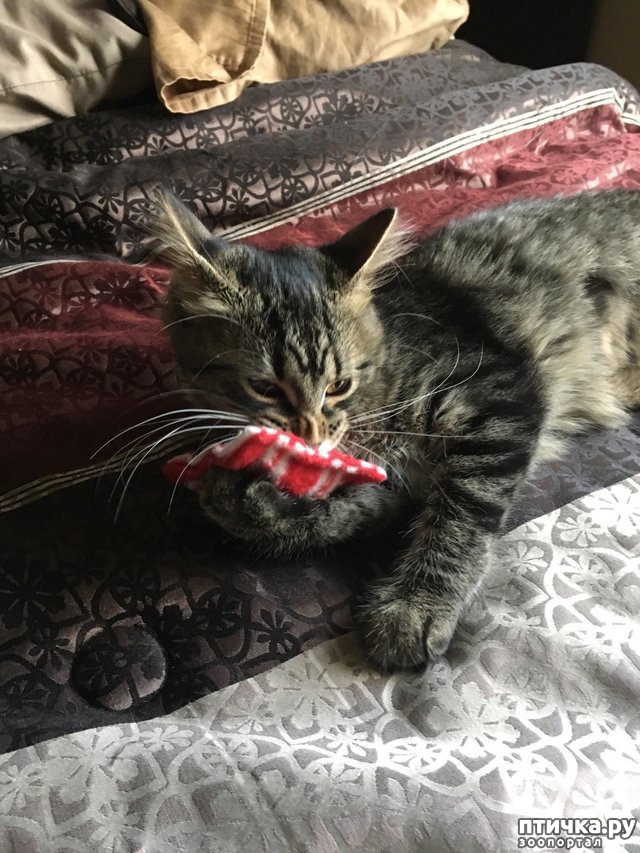 Бель настолько понравился этот клочок ткани, что врачу пришлось подарить его котейке насовсем. Ну, не отбирать ведь у ребёнка игрушку, правда?