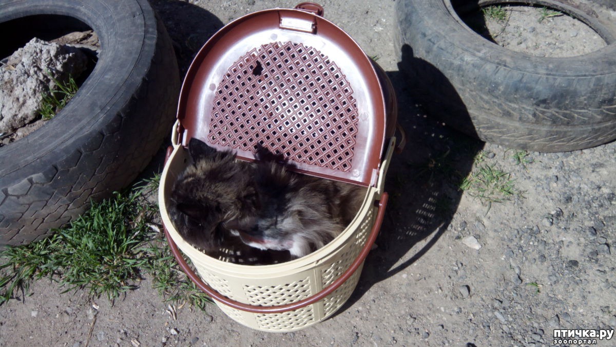 Взяла я переноску и пошла за Мишелькой. Застала ее вылизывающую свою шею.