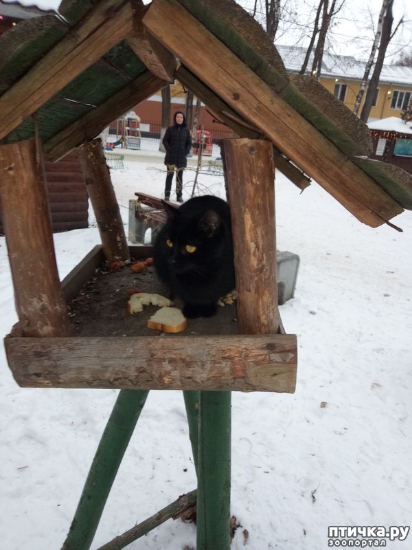 А кормушка неудачная, самая - для кошек. У меня во дворе три пятилитровки висят: высоко, рядом нет укрытий для кошек. За прошлый год одну синицы съели из сотни, к тому же может какая-то ослабленная была. С оной стороны "птичек жалко", но с другой стороны каждую треть. зебру должен съесть лев, иначе зебры съедят всю траву и на том всё кончится, с птицами также...