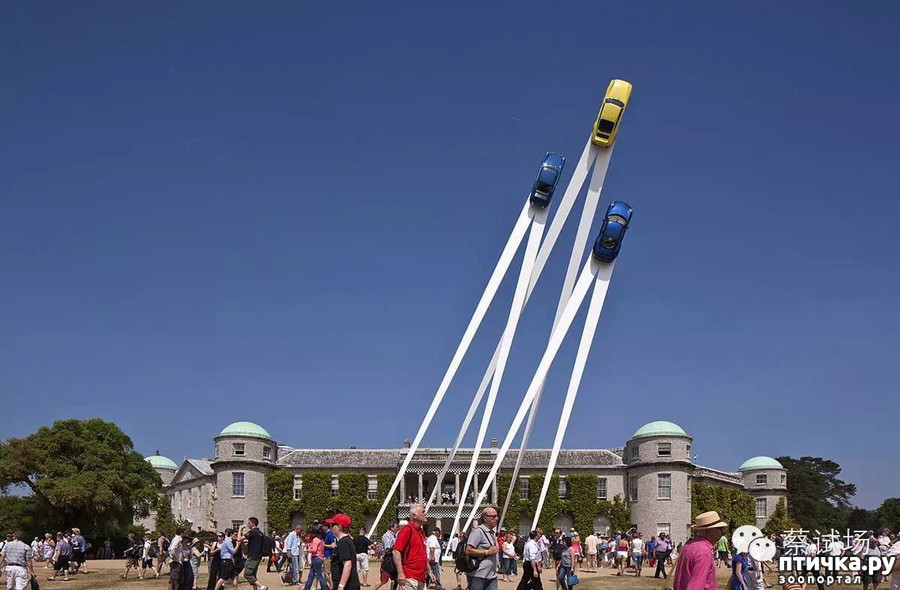 Эта скульптура представляет собой самые настоящие автомобили «Порше», которые будто идут на взлет по металлическим взлетным полосам. Размешена композиция в Гудвуде, где ежегодно проводятся фестивали скорости.