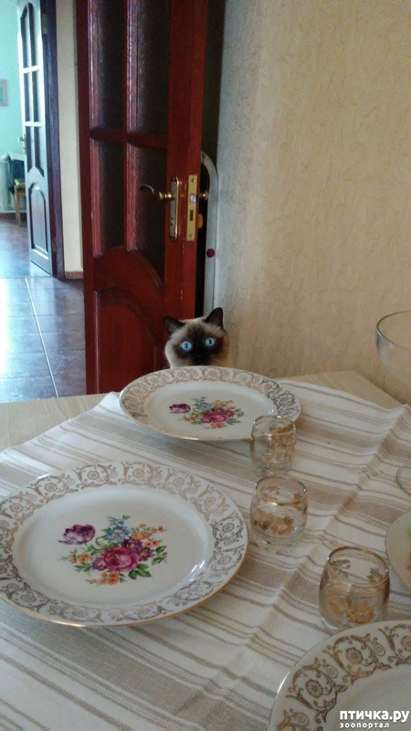 А вообще-то он пришел посмотреть, что там без него собрались есть? Он так всегда! А если тарелки полные ( и неважно, что кто- то за тарелкой сидит ) - сразу туда лапу запускает и вытаскивает, что с краю лежит))) Но мы его прощаем! Разве можно его не простить?