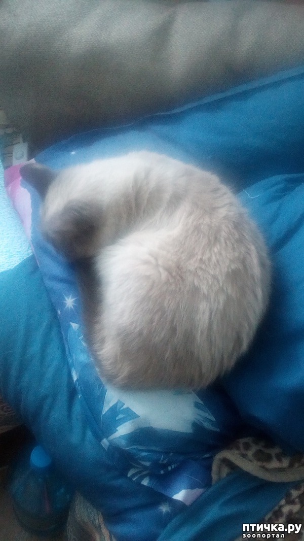Любимое Эльзино место для сна- моя подушка. И это не днем, когда я не претендую на право спать в собственной постели. Так она укладывается задолго до моего отхода ко сну. Вот, ложится клубочком на середину и даже не задумается, как я потом буду спать : На нее ли голову положу, под нее-красавицу. Ей все равно. Могу двигать ее рукой- бесполезно. Она становится сразу тяжелой, не сдвинешь! И дрыхнет так всю ночь. Моя голова то с боку, то сверху, но чаще покорно сползаю вниз и сплю вообще без подушки. Пробовала брать вторую. Эльза все равно перебирается на ту именно, на которой голова моя находится.