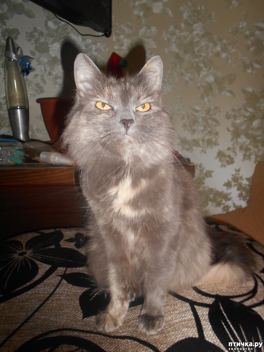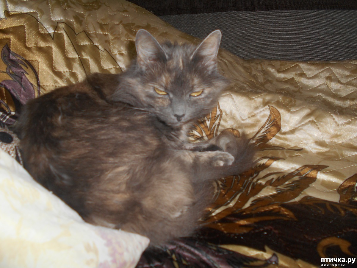 Вот так и появилась у нас Ника. Кошечка очень интеллигентная, маленькая по размеру, изящная, шерстка полудлинная, очень мягонькая и приятная на ощупь, как бархатная, не сваливается. Когда была молоденькая, была полностью серенькая, только животик беловато-рыжий и кончик хвостика, а с возрастом начали появляться рыжеватые пятна по верху шерсти по спине и бокам, но поверхностные.