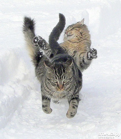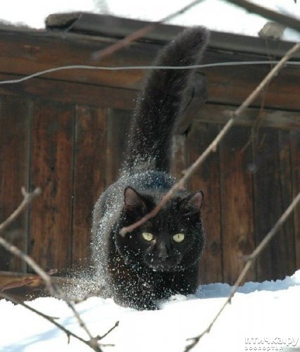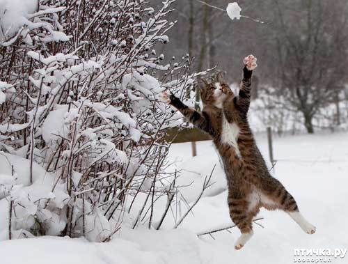 Но большинство кошачьих знакомы с зимой и со снегом не понаслышке. Кто-то из них, сытый и довольный, вышел из теплого жилья, прошелся и вернулся в тепло, а кому-то не удается зиму пережить. Но не будем о грустном. Предлагаю всем, у кого диванные коты вроде моего, и кто хозяин зимних бродяг, посмотреть на тех, кто знает, что такое снег. Поскольку своих фотографий нет, пришлось "выкрасть" из Интернета.