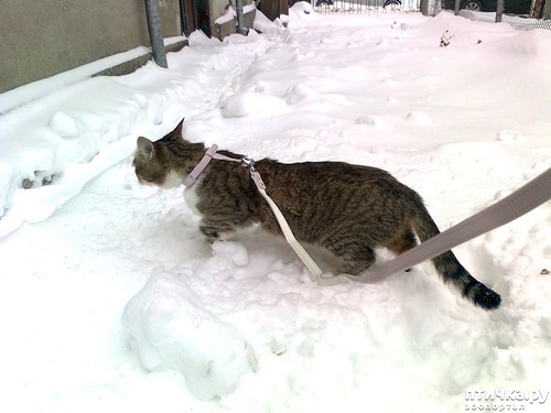Нашу муж предлагал прогулять на шлейке по снегу. На что получил мой вопль "Не дам!" Мою кисоньку, видевшую снег только из окна, да на улицу?! НЕТ!