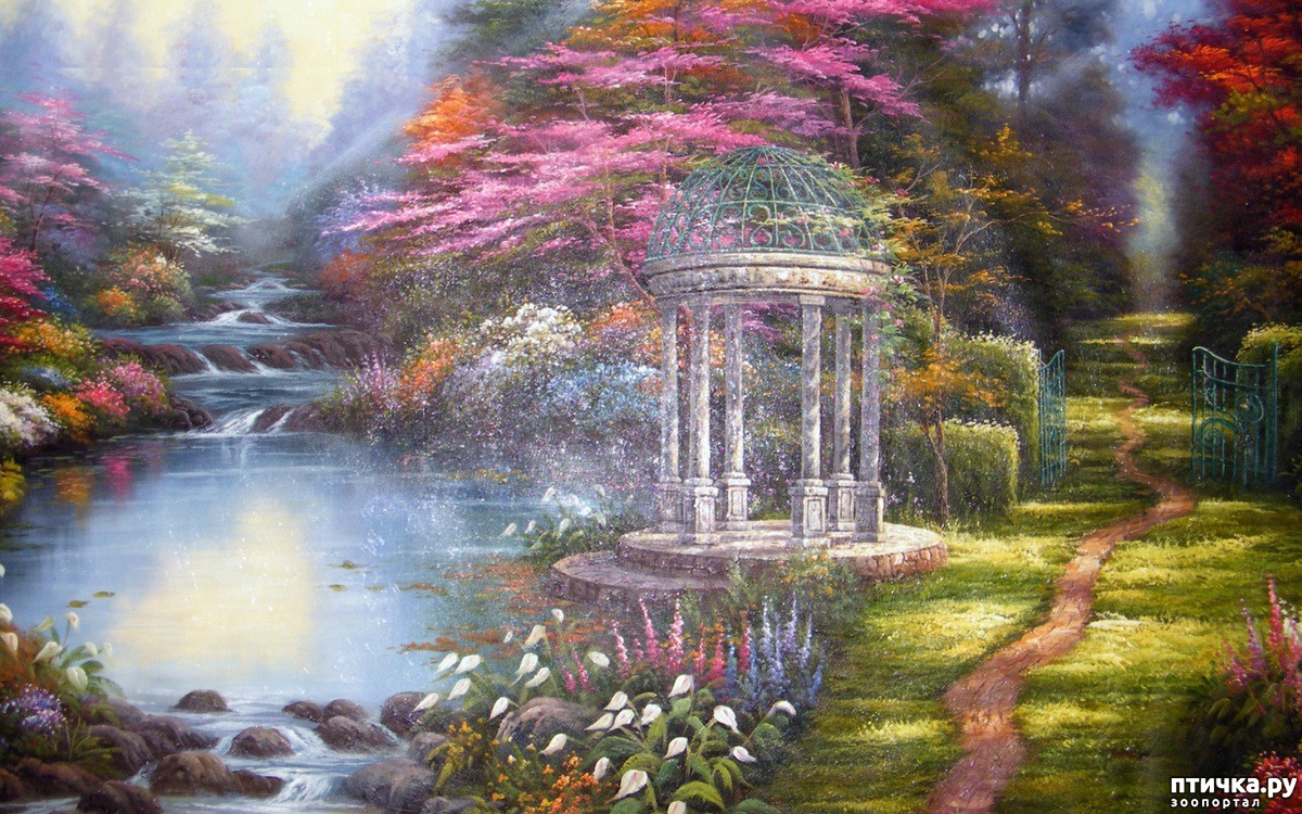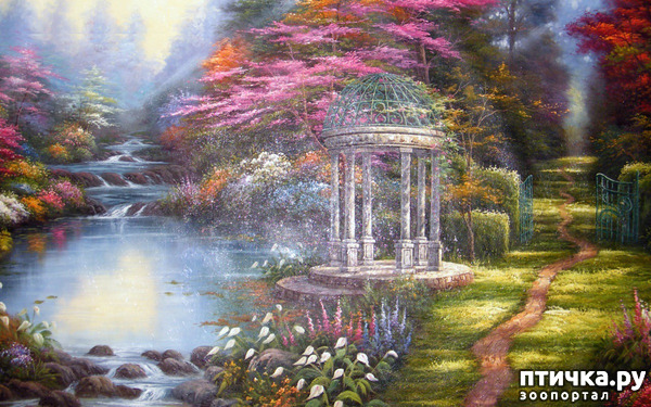 Вокруг были деревья, но это был не лес, цвели чудесные цветы, источая свой аромат кругом, трава была зеленая-зеленая, недалеко журчала голубая прозрачная речка, в ветках деревьев щебетали птички.