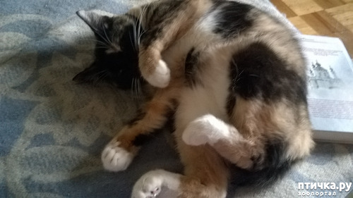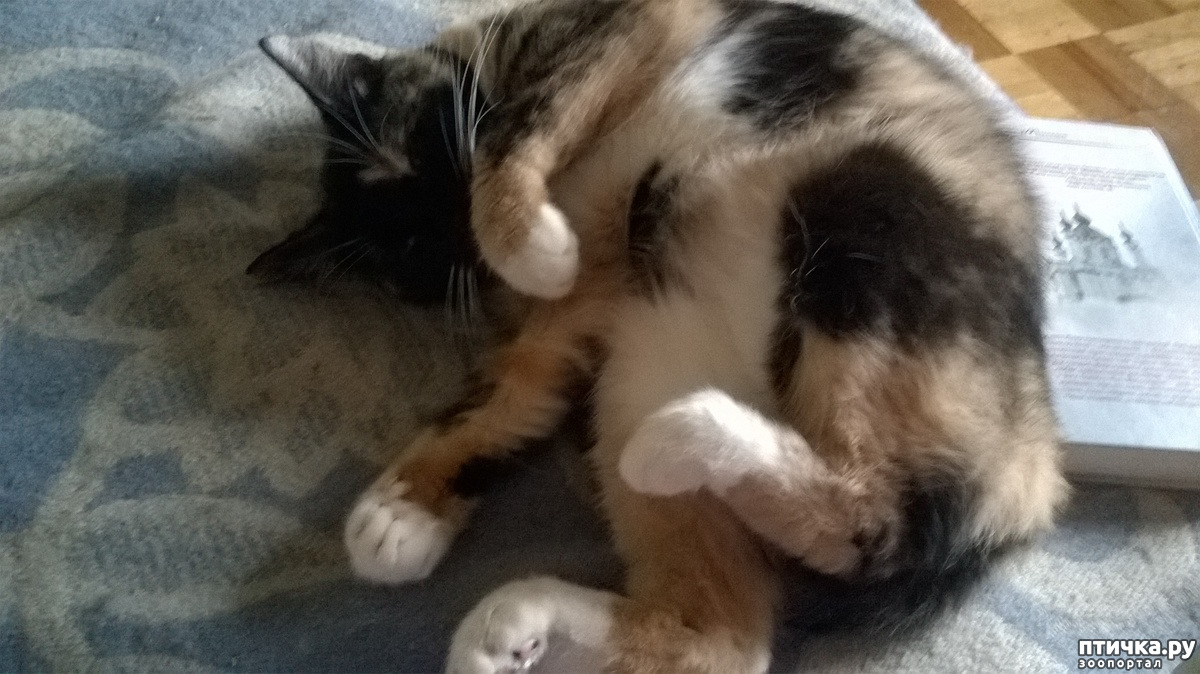 Это я рядом сидела-читала, вот она и растянулась около меня с книжкой! Глаша в основном клубочком спит. Это Пульхеша - широкая душа и лапы во все стороны!!!