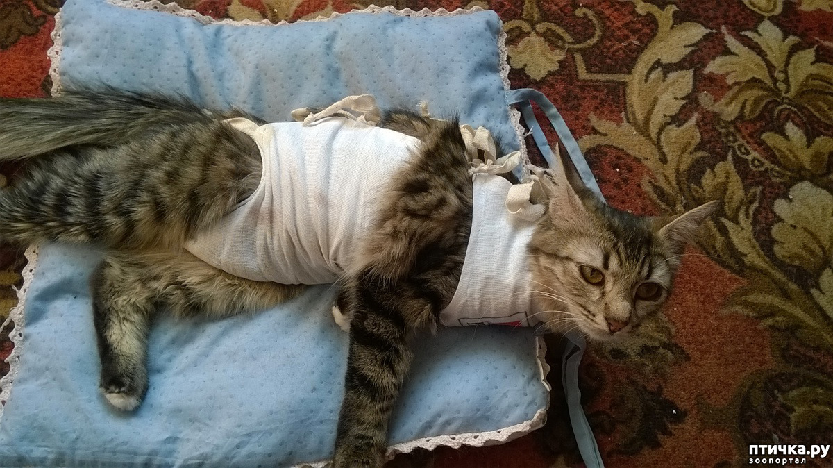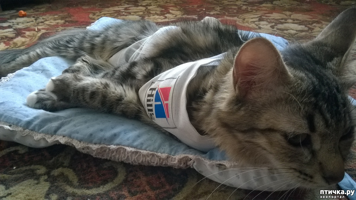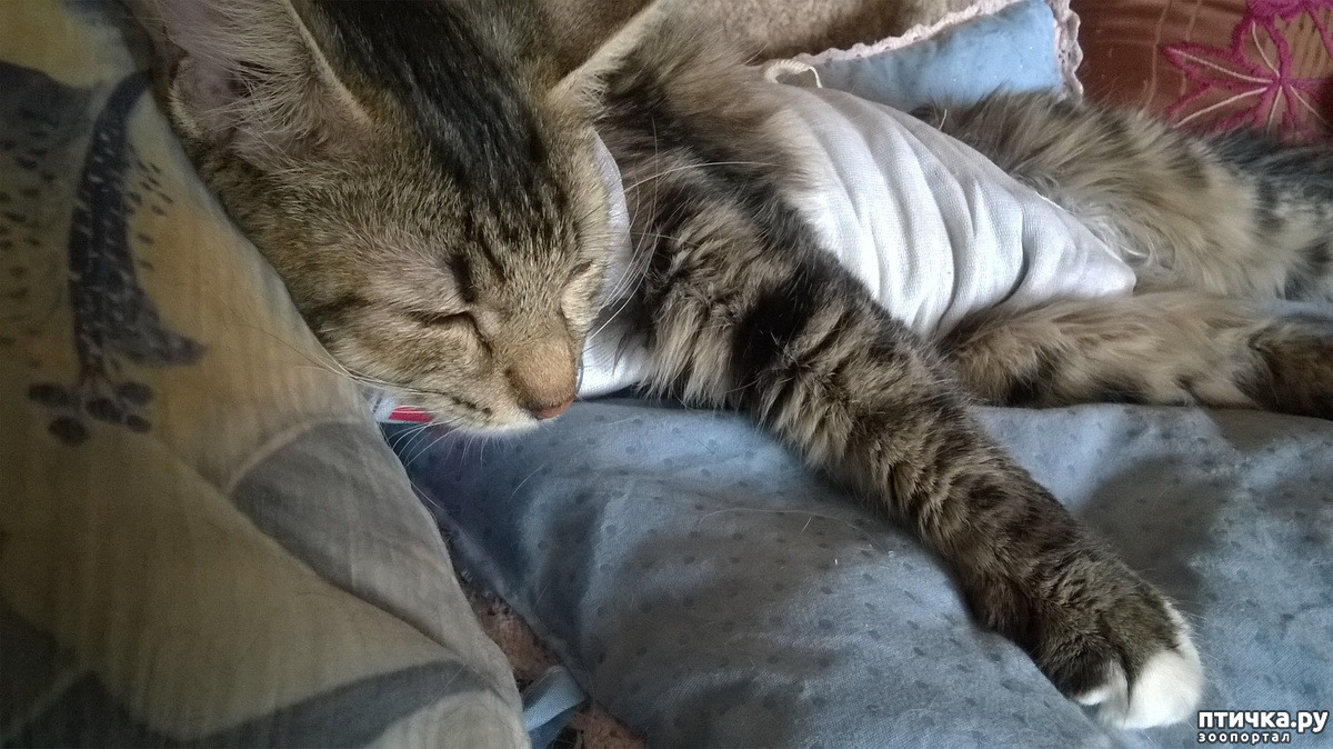 Просыпаться Пуша тоже стала быстро - через полчаса уже дергала передними лапками, пытаясь избавиться от катетера!