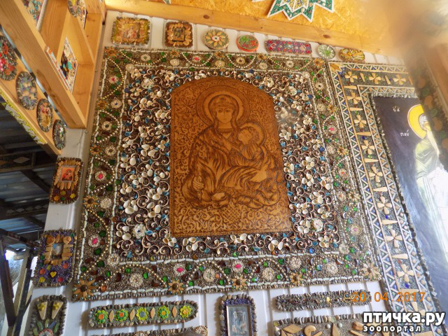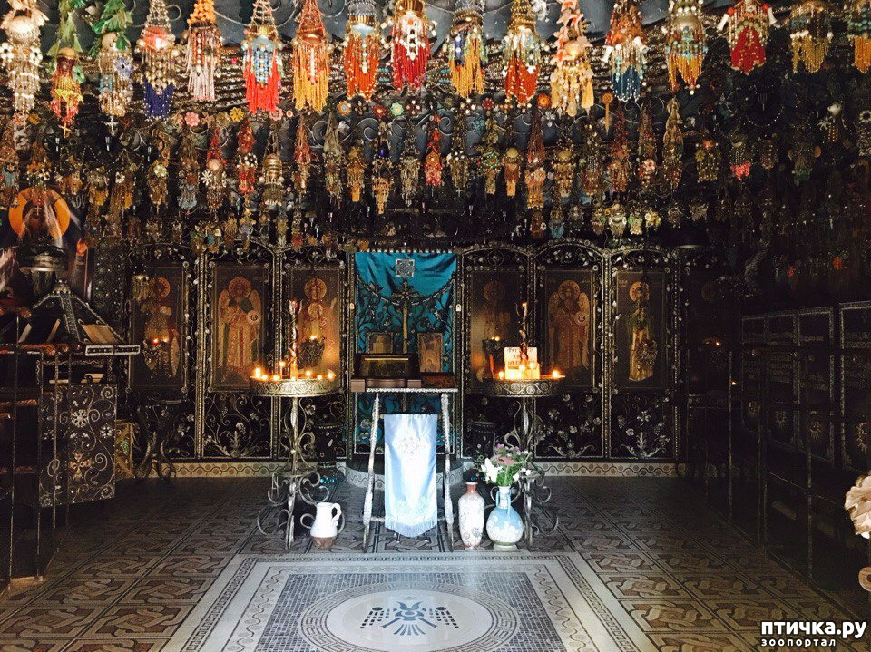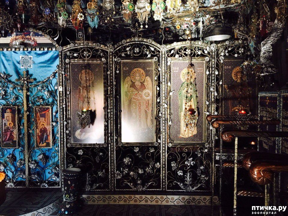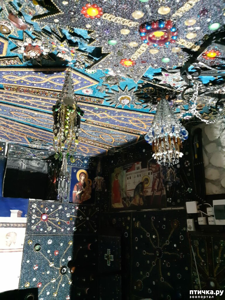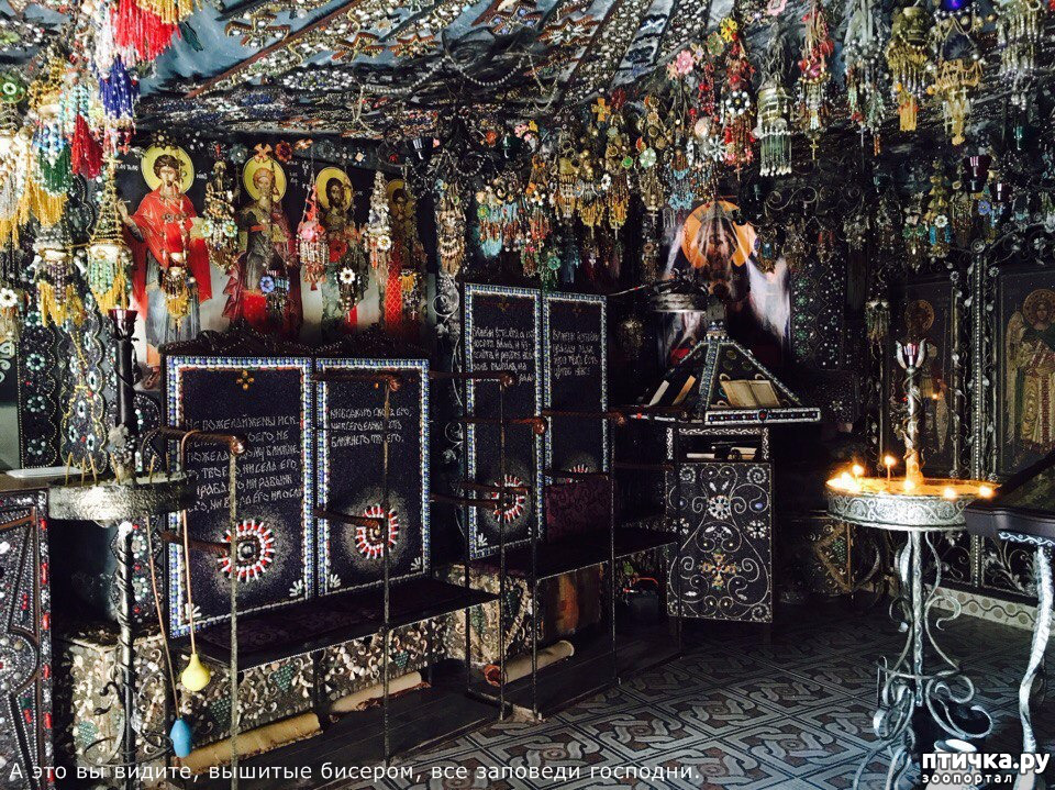 Этот храм берёт своё начало в шестом-восьмом веках. Много столетий он был святой христианской обителью. Однако, монастырское подворье со временем было ликвидировано и на месте храма образовалась каменоломня, где добывали камни. И только 13 лет назад храм стал возрождаться. В чём исключительная индивидуальность этого скита я вам сейчас расскажу и постараюсь показать наглядно. А дело всё в том, что весь храм и все постройки, вплоть до каждой монашеской кельи, украшены бисером и полудрагоценными камнями. Дело мастерства рук послушников и самого батюшки, который с молоду занимался живописью. Когда видишь всю эту рукотворную красоту впервые, то просто не верится, что такое возможно. Ну, судите сами.
