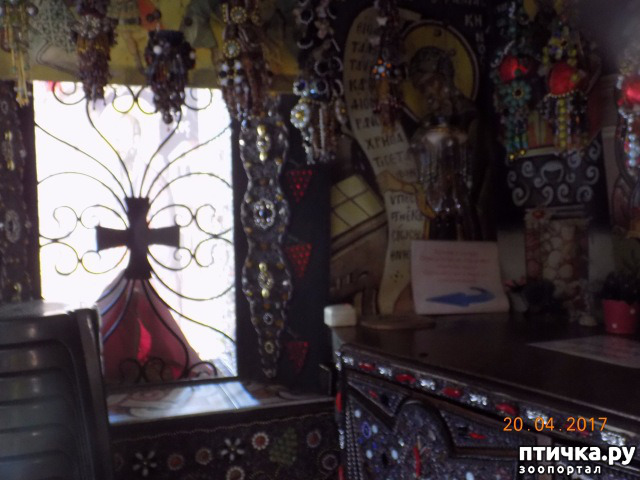 Одним словом, дорогие мои, всё то, что вы видели, поверьте мне на слово, изготовлено послушниками монастыря из бисера и полудрагоценных камней. Можно ли представить себе, что такой титанический многолетний труд был подвержен пожару? Когда мы услышали о том, что в скиту был пожар и сгорело очень много построек, верите, хотелось плакать... Слава Богу, что обошлось без жертв и был спасён сам храм Св. Анастасии.