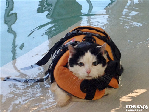 Иногда можно встретить кота, который любит воду. Но Холли из американского города Роанока не из таких. Она всегда ненавидела купаться. Однако, когда в 2013 у кошки начались проблемы с лишним весом, хозяйка решила попробовать научить её плавать. Для кошки было куплено специальное снаряжение, и начался эксперимент.