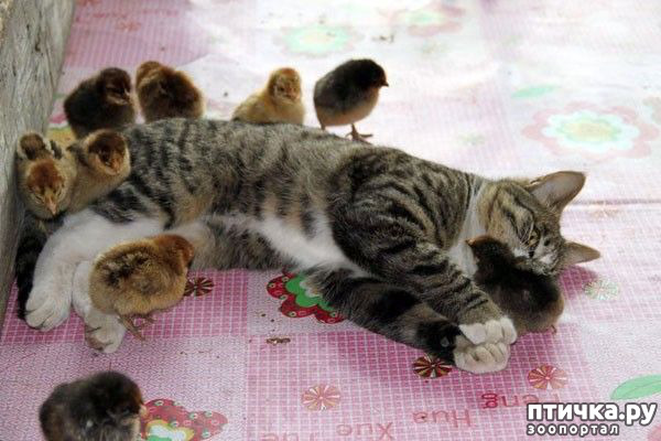 Кошка, которая заботится о цыплятах