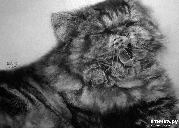 Захотелось и мне поддержать эстафету, столь благополучно стартовавшую на нашем сайте. И речь сегодня пойдёт о рисунке в карандаше, принадлежащего руке виртуозного мастера. Знакомьтесь: Пол Лунг - художник из Гонг-Конга. Главные музы в его творчестве - четыре кошки, проживающие в его доме. Любовь к кошкам отображается и оживает на листе бумаги, когда автор, беря в руки карандаш, старательно вырисовывает милые мордашки. Да, именно простым карандашом художник создает свои произведения искусства. В это на самом деле трудно поверить, настолько живыми кажутся рисунки.