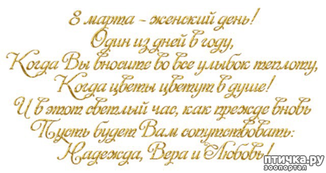 Дорогие мои подружки, пусть сегодня, в этот весенний день, мир будет согрет теплом женских улыбок! И пусть с пробуждением весны в женских умных головках зарождаются новые планы и мечты! Дорогие мои, это мы с вами являемс центром мировой гармонии! Это мы с вами несём в этот мир красоту, мудрость, милосердие, душевность, терпение. Это мы с вами отдаём свои любящие сердца и душевную теплоту своим близким, поддерживая домашний уют и семейное благополучие! Это мы с вами, чего уж там, вдохновляем наших мужчин на созидательный труд и добрые поступки!