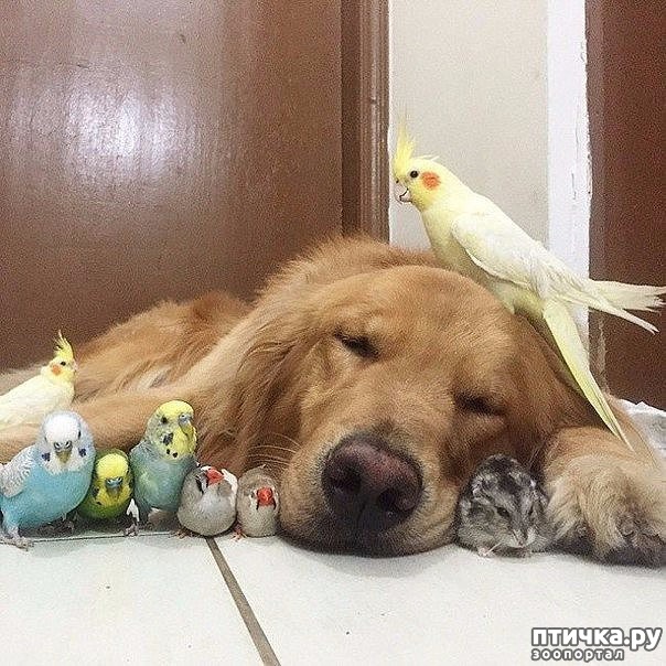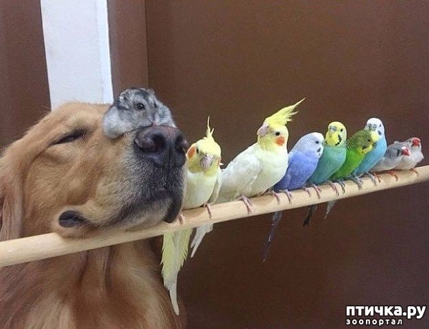 Самая необычная дружба на свете: Собака, хомяк и 8 попугаев