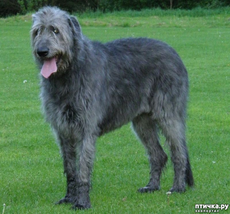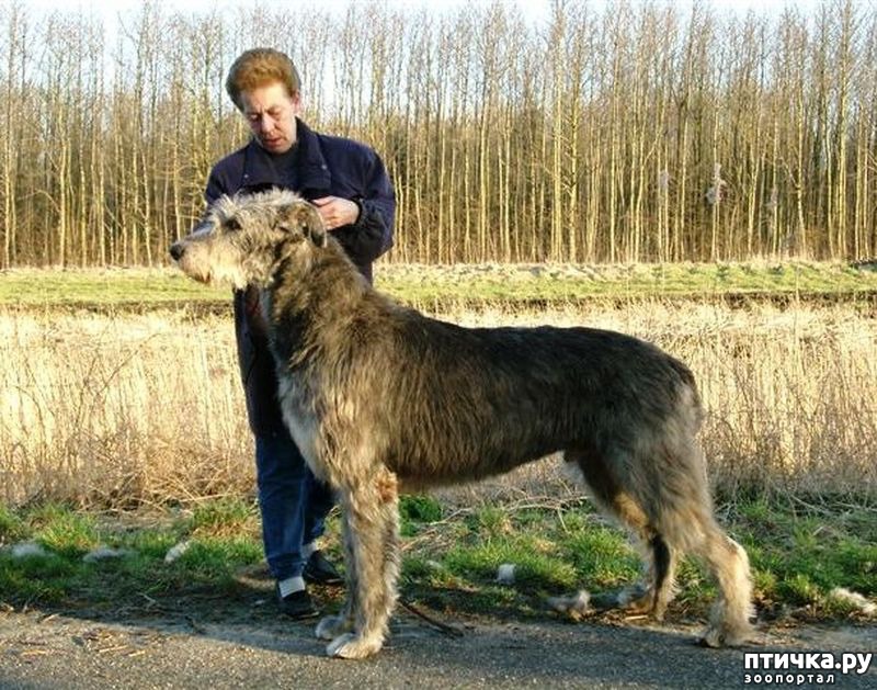 Ирландский волкодав. Первоначально выведенный из военных гончих, ирландский волкодав использовался для охоты и охраны. Порода очень старинная; есть предположения, что они были завезены в Ирландию в 7000 до н. э. Достигающая в среднем 86 см в высоту, это одна из самых высоких пород собак. Их вес, однако, является довольно средним: приблизительно 55 кг у самцов и 48 кг у самок. В отличие от многих других пород, ирландские волкодавы имеют высокую степень персонализации и чаще всего известны своими личными причудами и индивидуализмом, но они редко бывают глупы или агрессивны.