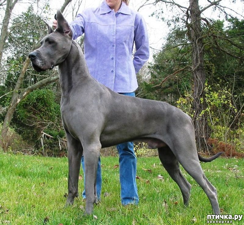 Немецкий дог. Немецкий дог – порода, известная своим гигантским размером. Их рост часто превышает 76 см, и неоднократно немецкие доги носили статус самой высокой живущей собаки в мире. Например, немецкий дог по имени Зевс (который умер в сентябре 2014 в возрасте 5 лет) достигал 112 см в холке. Они очень дружелюбны к другим собакам, домашним животным и знакомым людям. Средняя продолжительность их жизни составляет 6-8 лет, но некоторые немецкие доги, как было известно, жили 10 и более лет.