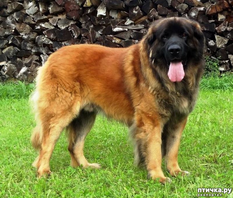 Леонбергер. Леонбергер, которого часто называют «нежный лев» – гигантская порода собак, название которой происходит от города Леонберг в Германии. Что касается пропорций тела, средний рост самцов достигает приблизительно 75 см, а вес колеблется в диапазоне 64-68 кг, высота самок в холке обычно составляет 70 см, а вес – приблизительно 52 кг. Леонбергера легко узнать благодаря его густой водостойкой шерсти. Эти сильные собаки обычно очень лояльны, умны, игривы и добры, что делает их идеальными домашними животными. К сожалению, средняя продолжительность их жизни составляет приблизительно 7 лет.