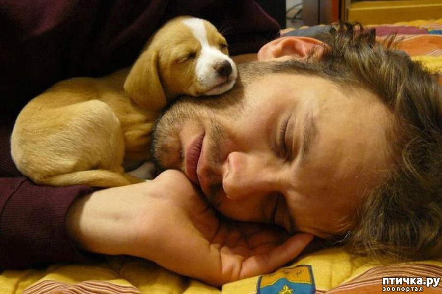 А это маленькое чудо просто не мыслит своей жизни без любимого хозяина.